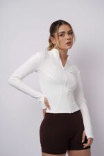 Dale a tus outfits un estilo único con nuestra Dry Jacket. Diseñada con un tejido suave y elástico, se adapta perfectamente a tu silueta, ofreciendo una horma espectacular.